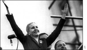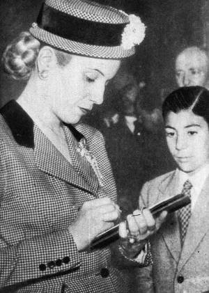 María Eva Duarte de Perón, née à Junín dans la province de Buenos Aires le 7 mai 1919 , décédée le 26 julio 1952, connue sous le nom d’Evita a été actrice mais aussi et surtout une des figures politiques les plus importantes d’Argentine.