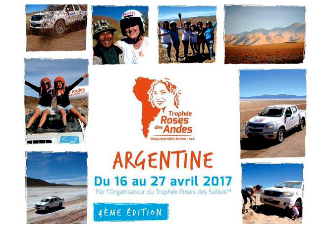 Ce dimanche 16 avril a débuté la 4eme édition du trophée Roses des Andes en Argentine et se terminera le 27 avril prochain! La majorité des participantes arrivent ce jour à Salta pour débuter l’unique rallye 100% féminin en Amérique du Sud. Cette aventure, soutenue par la nation argentine, a été déclarée d’intéret national pour la quatrième année consécutive! Zoom sur l’édition 2017.